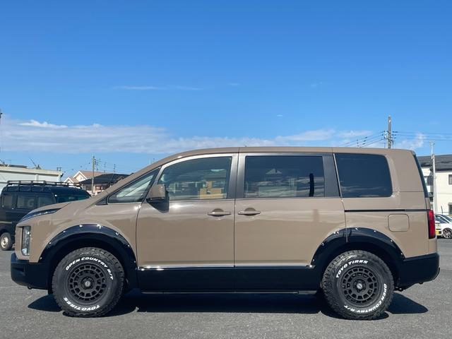 三菱 デリカD:5G パワーパッケージ USトヨタ純正カラー全塗装 JAOSフロントグリル/オーバーフェンダー TOYOオープンカントリーR/T新品タイヤ WEDSマッドヴァンスX新品アルミ 純正ナビ 全方位カメラ オートサイドステップ