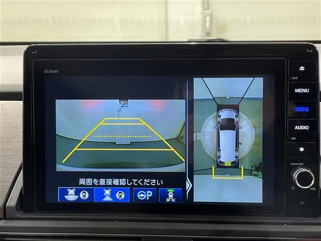 【マルチビューカメラシステム】まるでクルマを真上から見下ろしたかのような視点で駐車をサポートします!クルマの斜め後ろや真横など、前後左右の4つのカメラの映像が合成されて、モニターに映し出されます。