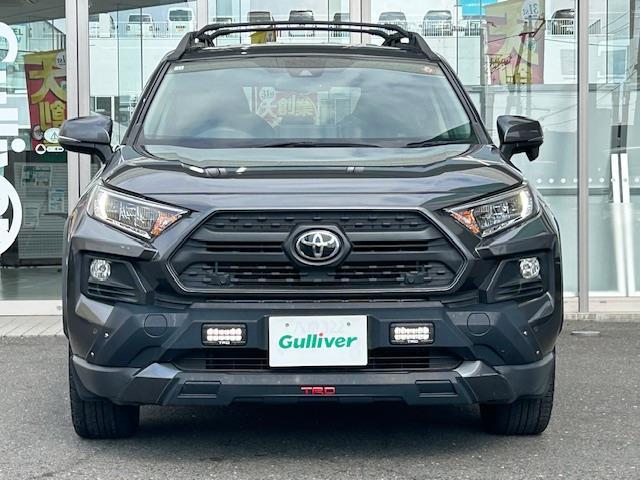 トヨタ RAV4アドベンチャー オフロードパッケージ フロントTRDエアロ/TRDフォグライト/TRDラゲッジマット/ルーフレール/純正トノカバー/ブラインドスポッドモニター/Bluetooth接続/オートマチックハイビーム/レーンアシスト/スマートキー