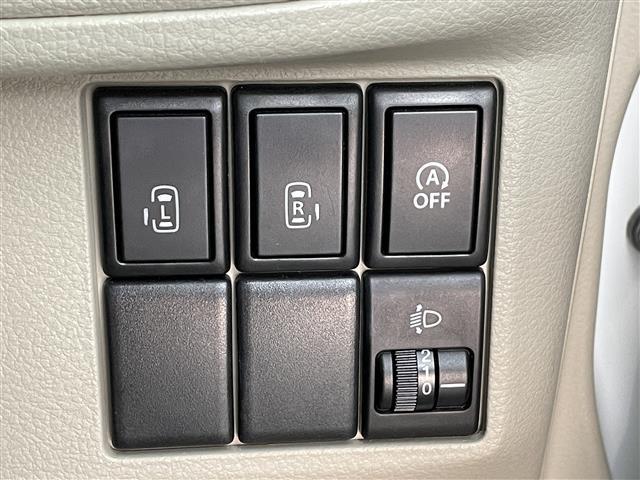 X プッシュスタート/両側電動スライド/スマートキー/電動格納ミラー/後席サンシェード/ドアバイザー/オートライト/シートヒーター(運転席のみ)/純正フロアマット/アイドリングストップ/オートエアコン