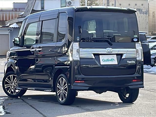 ダイハツ タントカスタムRS トップエディションSAII 4WD/禁煙車/社外メモリナビ/CD/DVD/SD/BT/フルセグ/バックカメラ/衝突軽減ブレーキ/レーンキープ/誤発進抑制/アイドリングストップ/両側パワースライドドア/オートライト/LEDヘッド