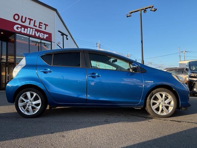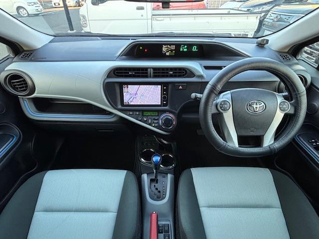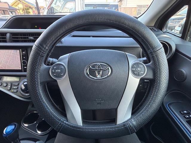 トヨタ アクアS ETC・横滑り防止装置・シートヒーター・バックカメラ・コーナーセンサー・ハンドルカバー・サイドブレーキカバー・純正アルミホイール・純正フロアマット・ドアモール・ドアバイザー・スペアキーあり