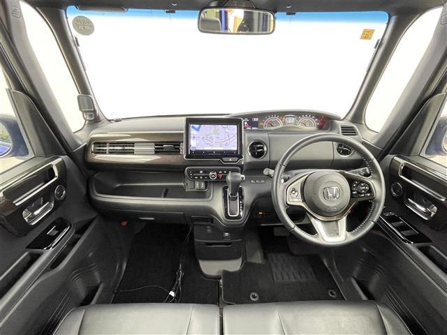 ホンダ N-BOXカスタムG・Lターボホンダセンシング 禁煙 純正15インチアルミホイール 純正フロアマット 両側パワースライドドア 社外8インチナビ バックカメラ LEDオートライト ハーフレザーシート シートヒーター パドルシフト USBポート ETC