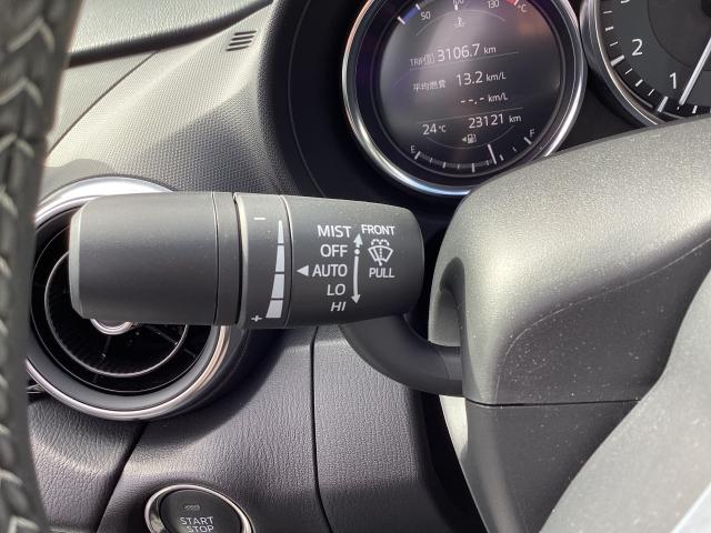 レバーをAUTOの位置にしているとき、レインセンサーが雨を感知すると、雨量に応じてワイパーが自動で作動してくれるオートワイパーを装備!設定変更で非作動にすると、間欠作動に固定されます。