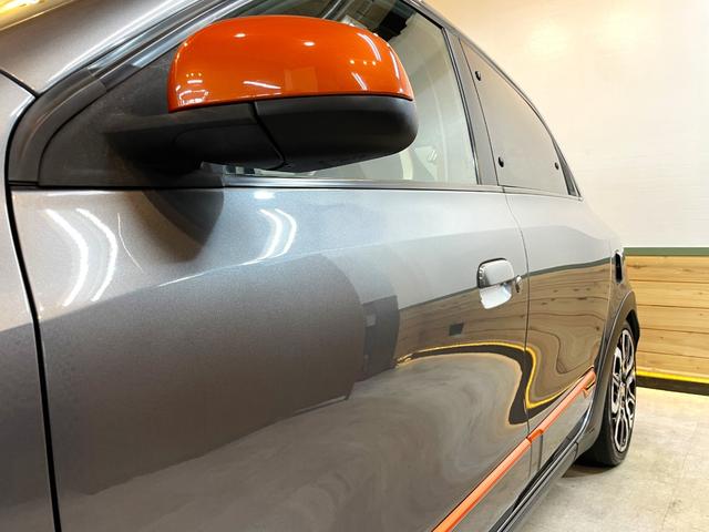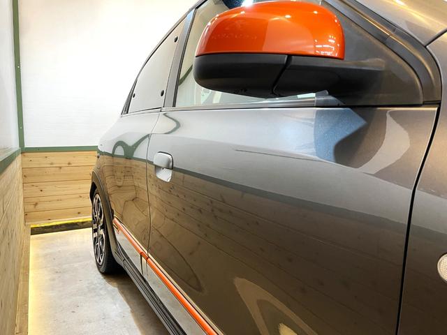フロントグリルに一直線に伸びるラインとサイドミラーに装飾されたオレンジ色が可愛らしい雰囲気からスポーティな印象に♪