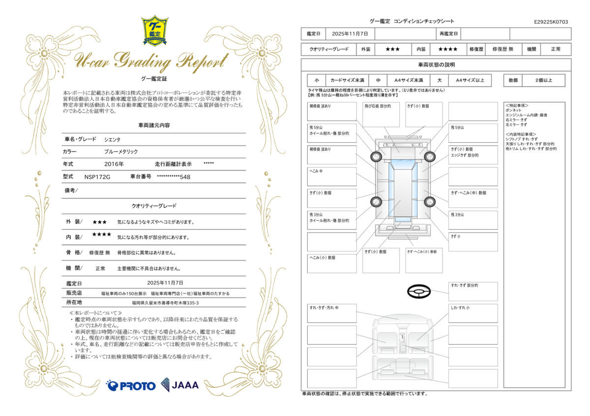 第三者機関による鑑定を実施しています。専門家の厳しい目を通して最大324項目を厳しく検査しています。安心してご検討・ご購入ください。