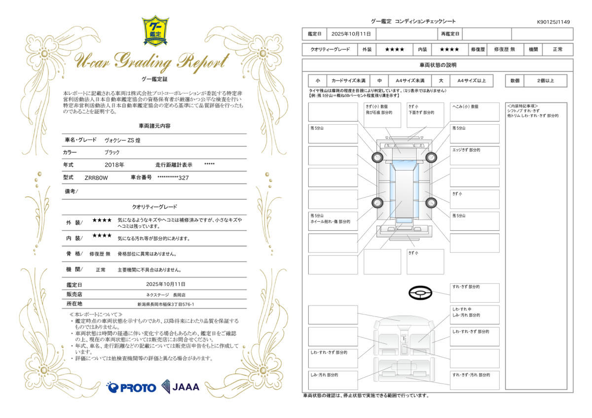 弊社では、全車『修復歴なし』のお車のみ取り扱っております。専任バイヤーによる厳選した仕入れの後、入庫後の車両チェックを行い、ネクステージが認定した高品質な中古車をご提供しております。