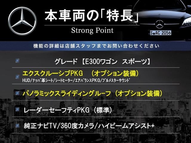 メルセデス・ベンツ EクラスステーションワゴンE300 ステーションワゴン スポーツ サンルーフ エクスクルーシブPKG レーダーセーフティPKG 純正ナビTV 360度カメラ ハイビームアシスト+ 前席パワーシート 全席シートヒーター 電動リア 純正19インチアルミ ETC 禁煙