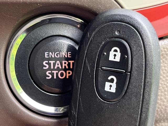 【キーレススタートシステム】カバンやポケットに入れたままでもドアの施錠・解錠が可能なスマートキーを装備。エンジンのオン・オフ時もカギを取り出す必要が無いからとっても便利です♪