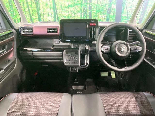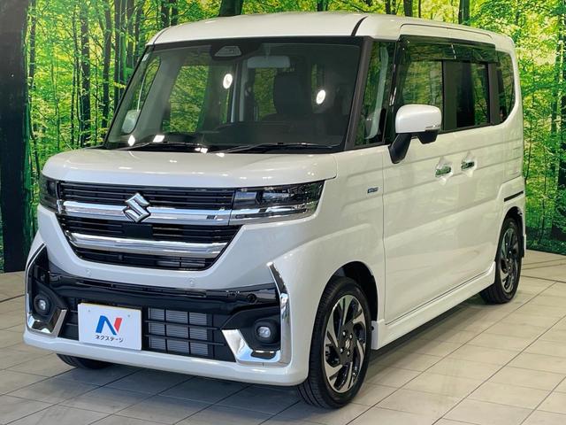 スズキ スペーシアカスタムハイブリッドXSターボ 届出済未使用車 メーカーナビ 全周囲カメラ 衝突軽減 レーダークルーズ HUD 両側電動ドア ハーフレザー シートヒーター ステアリングヒーター クリアランスソナー LEDヘッド ETC スマートキー