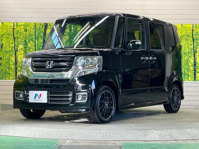 ホンダ N-BOXカスタムG ターボSSブラックスタイルパッケージ 禁煙車 純正ナビ バックカメラ 両側電動ドア 衝突被害軽減システム スマートキー HIDヘッド ビルトインETC クルコン オートライト オートエアコン 純正15インチアルミ Bluetooth