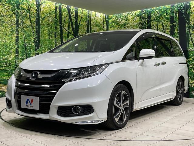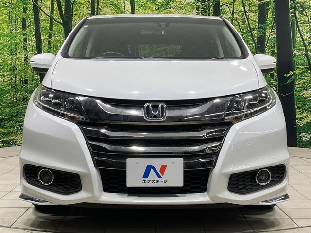 ホンダ オデッセイアブソルート 両側電動ドア バックカメラ 衝突被害軽減システム 禁煙車 ハーフレザーシート スマートキー LEDヘッド クルコン オートライト オートエアコン 純正17インチアルミ Bluetooth CD