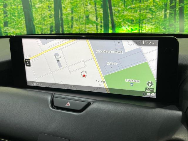 【12.3インチマツダコネクト】車内の雰囲気にマッチした大型ディスプレイ。スマホ接続でのナビ使用やBluetooth再生等、様々な機能が楽しめます。直感的なダイヤル操作が可能で、使い勝手も良好です。