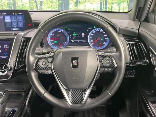 トヨタ クラウンハイブリッドRSアドバンス TRDフルエアロ 純正8型SDナビ 黒レザーシート バックカメラ 衝突軽減システム BSM レーダークルーズ 禁煙車 前席シートエアコン ドラレコ レザーシート LEDヘッド ETC