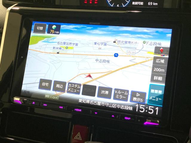 【大画面ナビ】人気の大型9インチナビを装備。存在感のある大画面はインパクト大!ナビ利用時のマップ表示は見やすく、テレビやDVDは臨場感がアップ!いつものドライブがグッと楽しくなります♪