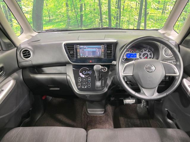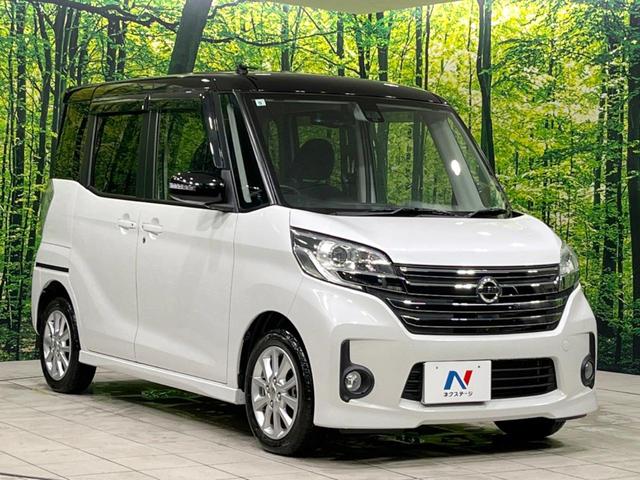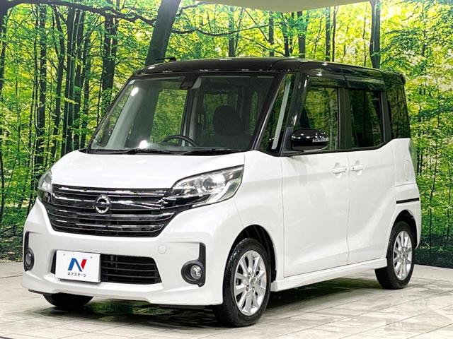 日産 デイズルークスハイウェイスター X 純正SDナビ 全周囲カメラ 両側電動ドア 衝突被害軽減システム ETC 禁煙車 スマートキー HIDヘッド 2トーンカラー オートエアコン 純正14インチアルミ フルセグ ロールサンシェード CD再生