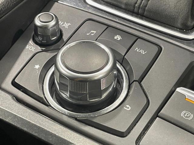 【8インチマツダコネクト】車内の雰囲気にマッチした大型のディスプレイ。スマホ接続でのナビ使用やBluetooth再生等、様々な機能が楽しめます。直感的なダイヤル操作が可能で、使い勝手も良好です。