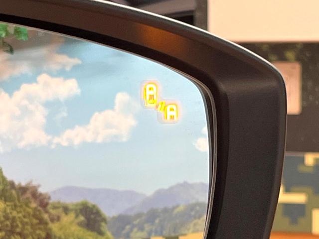 【ブラインドスポットモニタリング】走行中、ドアミラーの死角になりやすい箇所に後続車が接近するとサイドミラー付近に警告を表示、ドライバーに注意喚起をしてくれます。