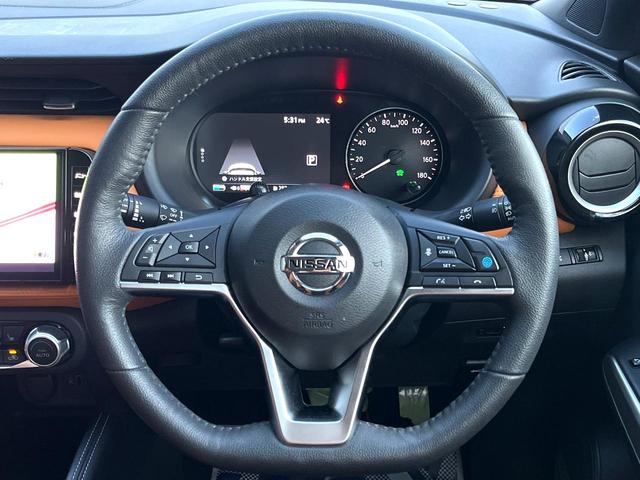 日産 キックスX ツートーンインテリアエディション 純正SDナビ 全周囲カメラ 衝突被害軽減システム レーダークルーズ 禁煙車 レザーシート ドラレコ コーナーセンサー LEDヘッド ビルトインETC オートハイビーム 車線逸脱警報 オートライト