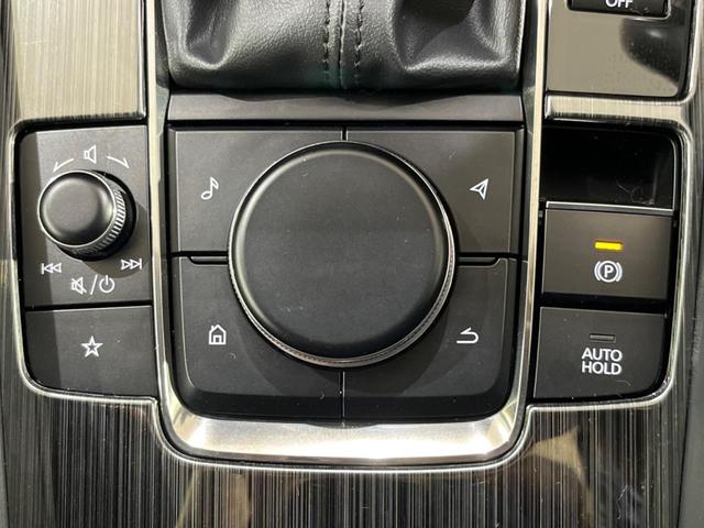 【8.8インチマツダコネクト】車内の雰囲気にマッチした大型のディスプレイ。スマホ接続でのナビ使用やBluetooth再生等、様々な機能が楽しめます。直感的なダイヤル操作が可能で、使い勝手も良好です。