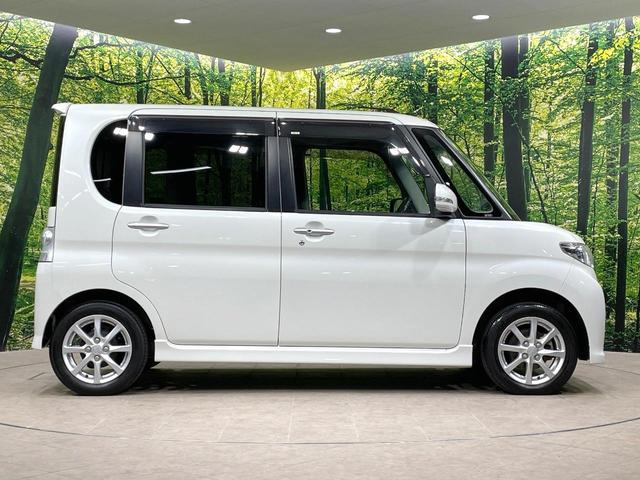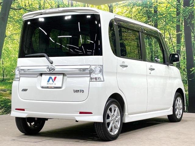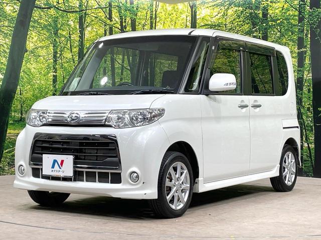 ダイハツ タントカスタムX 電動スライドドア 純正SDナビ バックカメラ 禁煙車 スマートキー HIDヘッドライト オートエアコン 純正14インチアルミ Bluetooth フルセグ 革巻きステアリング フォグライト