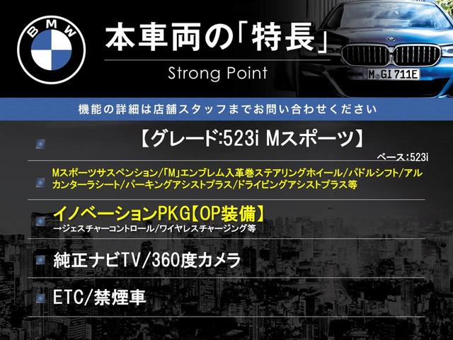 BMW 5シリーズ523i Mスポーツ イノベーションPKG 純正ナビTV 360度カメラ アクティブズクルコン HUD パワーシート パワーバックドア アダプティブLEDヘッド ハイビームアシスト 純正19インチAW ETC 禁煙車