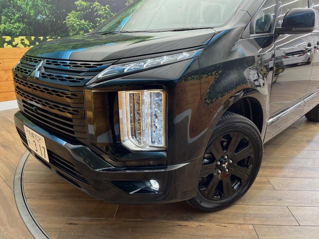三菱 デリカD:5ブラックエディション 4WD 7人乗り 9型SDナビ 革シート 電動サイドステップ シートヒーター パワーバックドア パワーシート AC100V ETC バックカメラ スマートキー 純正18インチアルミ