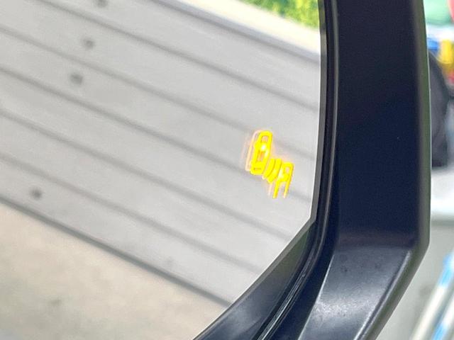 【ブラインドスポットモニター】走行中、ドアミラーの死角になりやすい箇所に後続車が接近するとサイドミラーのレンズに警告を表示!ドライバーに注意喚起をしてくれます。