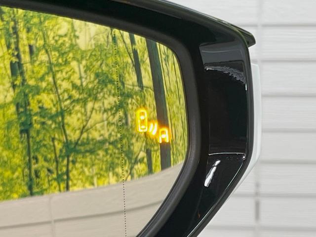 【ブラインドスポットモニター】走行中、ドアミラーの死角になりやすい箇所に後続車が接近するとサイドミラーのレンズに警告を表示!ドライバーに注意喚起をしてくれます。