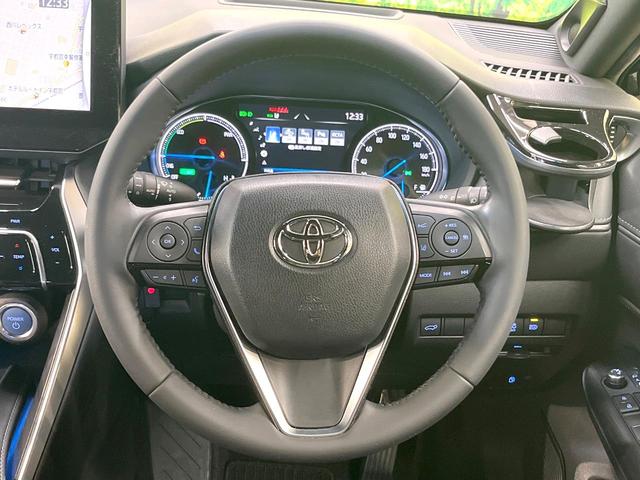 トヨタ ハリアーハイブリッドZ 純正12インチナビ 全周囲カメラ JBLサウンド 衝突被害軽減システム レーダークルーズ 禁煙車 電動リアゲート ハーフレザーシート パワーシート コーナーセンサー スマートキー LEDヘッド ETC
