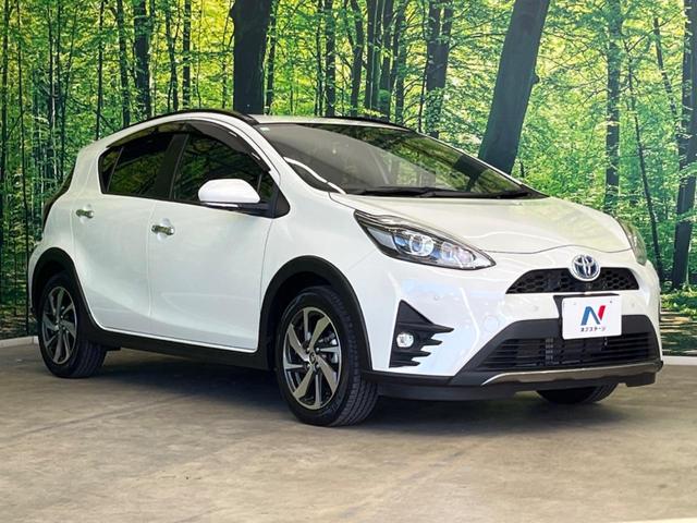 トヨタ アクアクロスオーバー グラム 全周囲カメラ 衝突被害軽減システム 禁煙車 ハーフレザーシート ドラレコ LEDヘッド ETC2.0 オートハイビーム 車線逸脱警報 オートライト オートエアコン 純正16インチアルミ