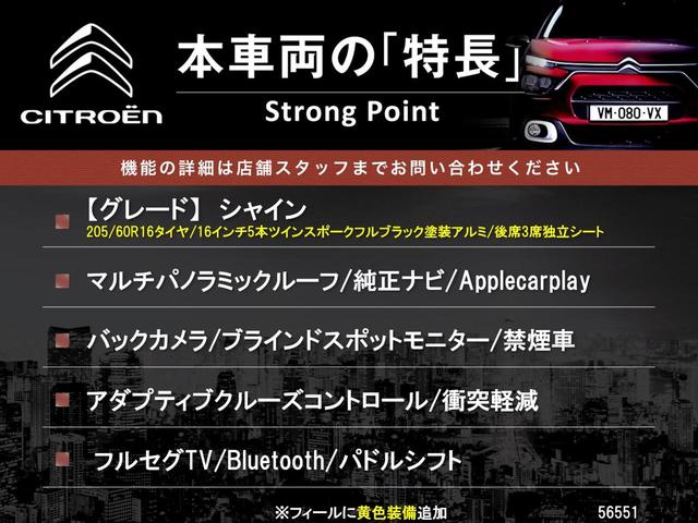 シトロエン ベルランゴシャイン マルチパノラミックルーフ 純正ナビ アップルカープレイ アダプティブクルーズコントロール ブラインドスポットモニター フルセグTV Bluetooth再生 バックカメラ 禁煙車 純正16インチアルミ