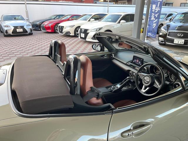 マツダ ロードスターブラウン・トップ ブラウン革シート セーフティパッケージ ブラインドスポットモニタリング パドルシフト アイドリングストップ 純正16インチアルミ 革巻きステアリング マツダコネクトSDナビ シートヒーター ETC