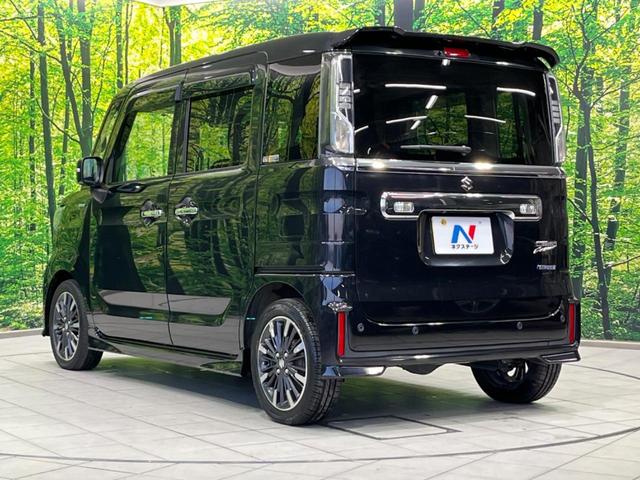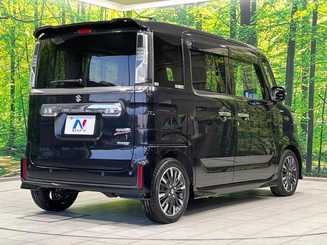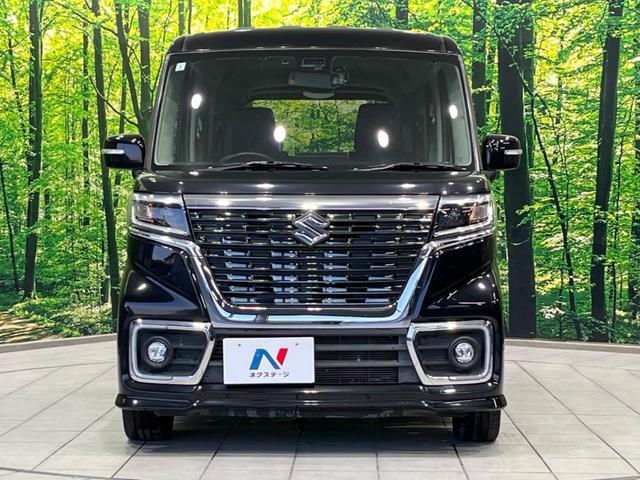 スズキ スペーシアカスタムハイブリッドXSターボ 4WD 両側電動ドア SDナビ バックカメラ 衝突軽減装置 禁煙車 ハーフレザーシート ドラレコ コーナーセンサー スマートキー LEDヘッド ETC シートヒーター クルコン オートハイビーム
