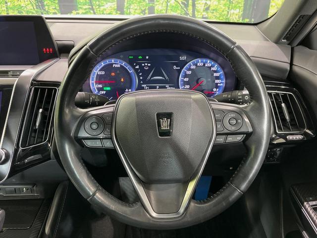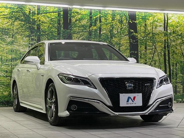 トヨタ クラウンハイブリッドRSアドバンス メーカー8型ナビ 黒革シート シートベンチレーション バックカメラ AC100V電源 衝突軽減装置 レーダークルーズ 禁煙車 前席パワーシート コーナーセンサー スマートキー LEDヘッドライト