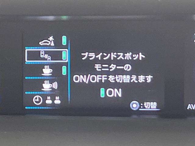 【ブラインドスポットモニター】走行中、ドアミラーの死角になりやすい箇所に後続車が接近するとサイドミラーのレンズに警告を表示!ドライバーに注意喚起をしてくれます。