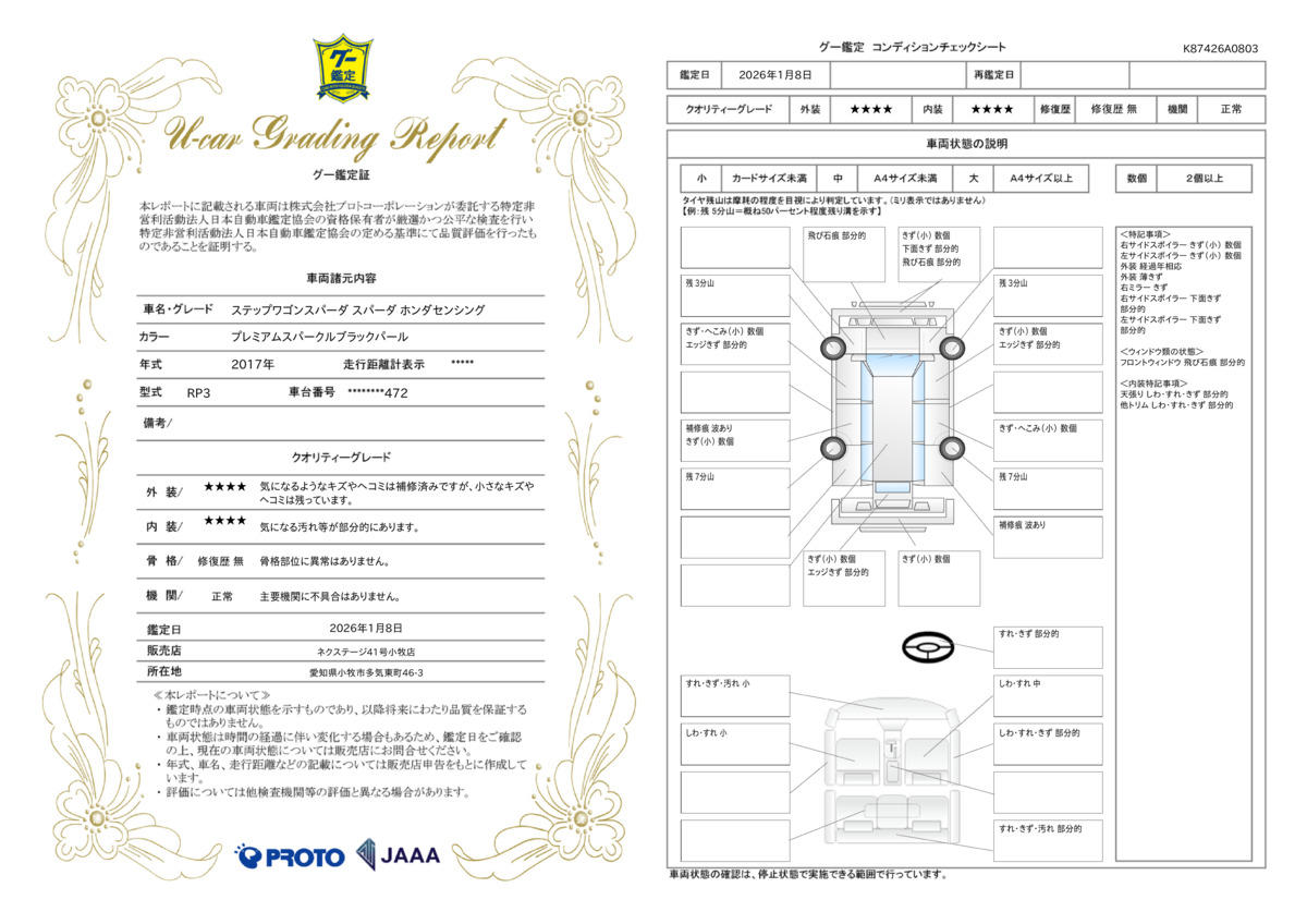 | 走行距離 | 5.0万km | 修復歴 | なし |