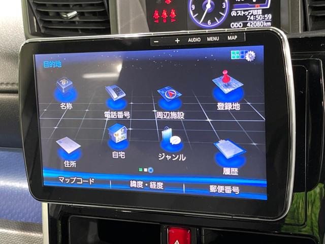 【大画面ナビ】人気の大型9インチナビを装備。存在感のある大画面はインパクト大!ナビ利用時のマップ表示は見やすく、テレビやDVDは臨場感がアップ!いつものドライブがグッと楽しくなります♪