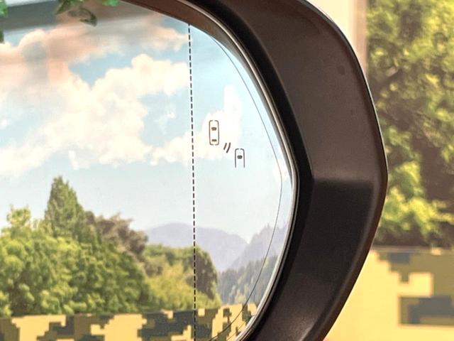 【ブラインドスポットモニター】走行中、ドアミラーの死角になりやすい箇所に後続車が接近するとサイドミラーのレンズに警告を表示!ドライバーに注意喚起をしてくれます。