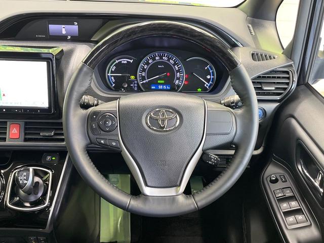 トヨタ エスクァイアハイブリッドGi 9インチナビ バックカメラ 禁煙車 両側電動ドア クルーズコントロール シートヒーター オートライト オートエアコン リアオートエアコン ETC ドラレコ 置くだけ充電 Bluetooth再生