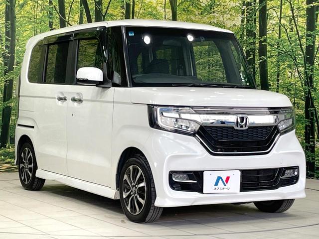ホンダ N-BOXカスタムG・Lホンダセンシング 禁煙車 両側電動ドア SDナビ バックカメラ 衝突軽減 ドラレコ ビルトインETC スマートキー シートヒーター LEDヘッド 純正14インチアルミ 車線逸脱警報 オートエアコン Bluetooth