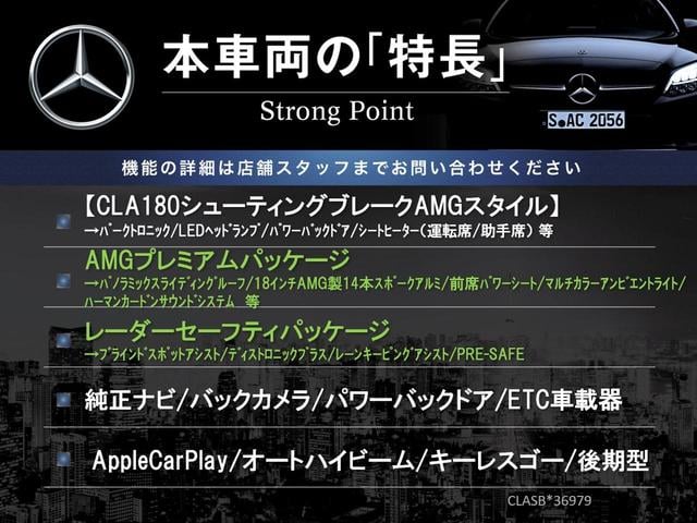 CLA180 シューティングブレーク AMGスタイル AMGプレミアムパッケージ レーダーセーフティパッケージ パノラミックスライディングルーフ AppleCarPlay 禁煙車 純正ナビ バックカメラ 前席パワーシート 前席シートヒーター ETC車載器
