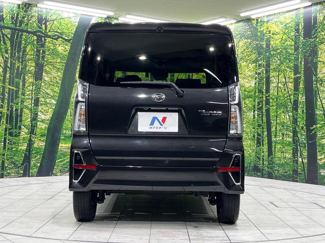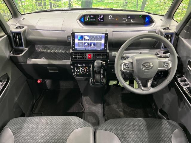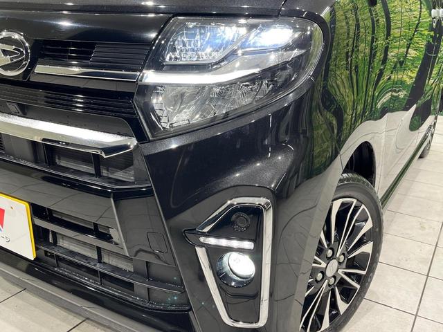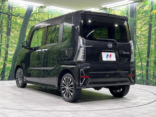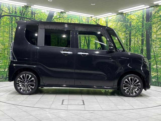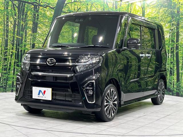 ダイハツ タントカスタムRS 4WD 両側電動ドア 純正9インチナビ バックカメラ 衝突被害軽減システム レーダークルーズ ハーフレザーシート ドラレコ コーナーセンサー スマートキー LEDヘッド ETC 純正15インチアルミ