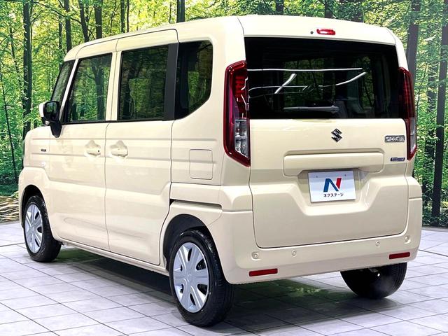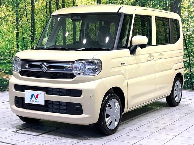 スズキ スペーシアハイブリッドG 届出済未使用車 セーフティサポート アイドリングストップ オートエアコン スマートキー ステアリングスイッチ 禁煙 ベンチシート LEDヘッドライト オートライト 電動格納ミラー 横滑り防止装置