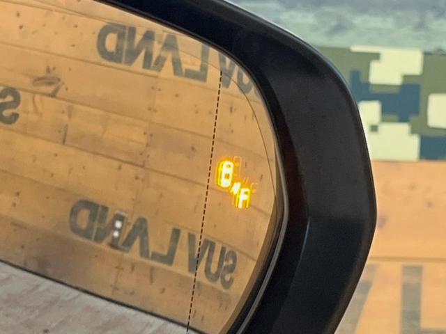 【ブラインドスポットモニター】走行中、ドアミラーの死角になりやすい箇所に後続車が接近するとサイドミラーのレンズに警告を表示!ドライバーに注意喚起をしてくれます。