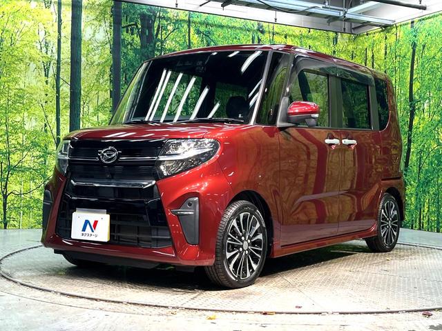 ダイハツ タントカスタムRS ターボ 両側電動ドア 全周囲カメラ スマートアシスト レーダークルーズ 禁煙車 ハーフレザーシート ドラレコ コーナーセンサー スマートキー LEDヘッド ビルトインETC 純正15インチアルミ