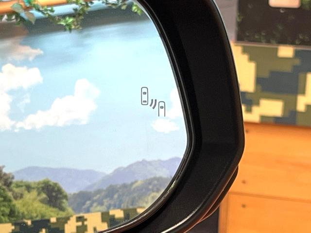 【ブラインドスポットモニター】走行中、ドアミラーの死角になりやすい箇所に後続車が接近するとサイドミラーのレンズに警告を表示!ドライバーに注意喚起をしてくれます。