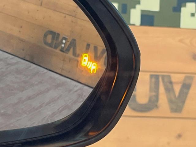 【ブラインドスポットモニター】走行中、ドアミラーの死角になりやすい箇所に後続車が接近するとサイドミラーのレンズに警告を表示!ドライバーに注意喚起をしてくれます。