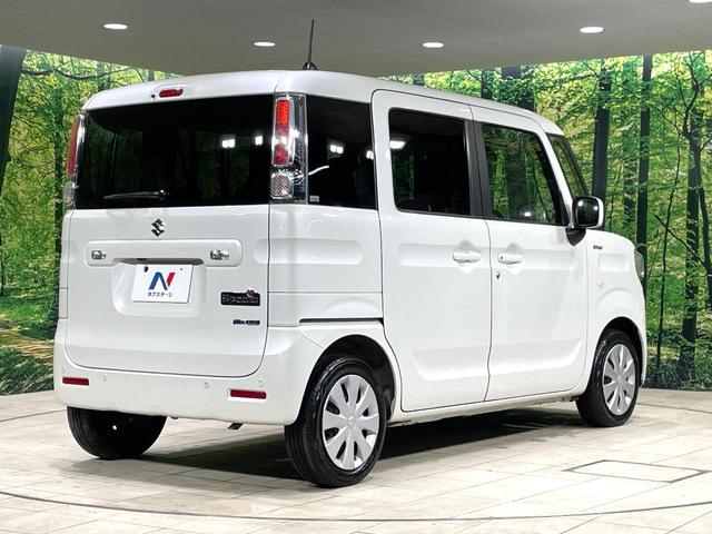 スズキ スペーシアハイブリッドG 衝突軽減システム 車線逸脱警報 クリアランスソナー 横滑り防止装置 バックカメラ スマートキー プッシュスタート オートマチックハイビーム シートアンダーボックス ベンチシート オートエアコン 禁煙