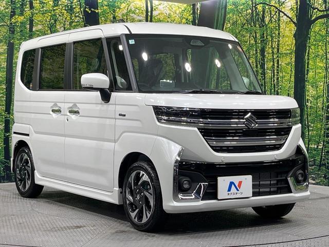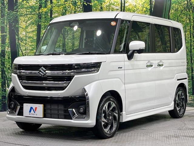 スズキ スペーシアカスタムハイブリッドXS 届出済未使用車 両側電動ドア 衝突被害軽減システム レーダークルーズ コーナーセンサー スマートキー LEDヘッド 純正15インチアルミ 車線逸脱警報 オートライト オートエアコン LEDフォグ